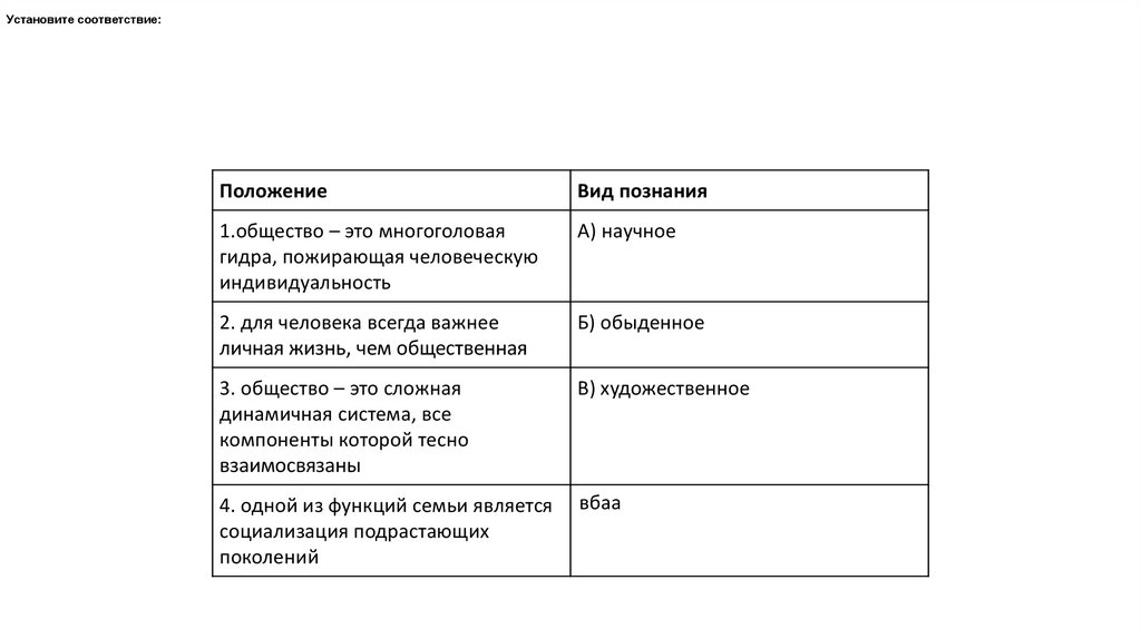 Установите соответствие:Положение
