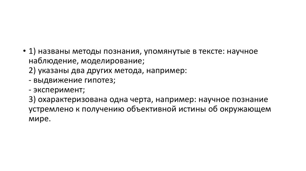 • 1) названы методы познания, упомянутые в тексте: научноенаблюдение, моделирование;