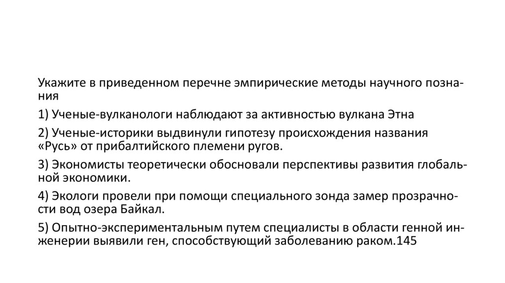 Укажите в приведенном перечне эмпирические методы научного познания1) Ученые-вулканологи наблюдают за активностью вулкана Этна