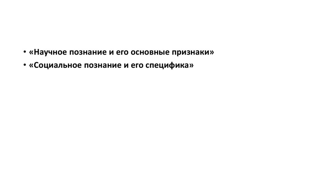 • «Научное познание и его основные признаки»• «Социальное познание и его специфика»