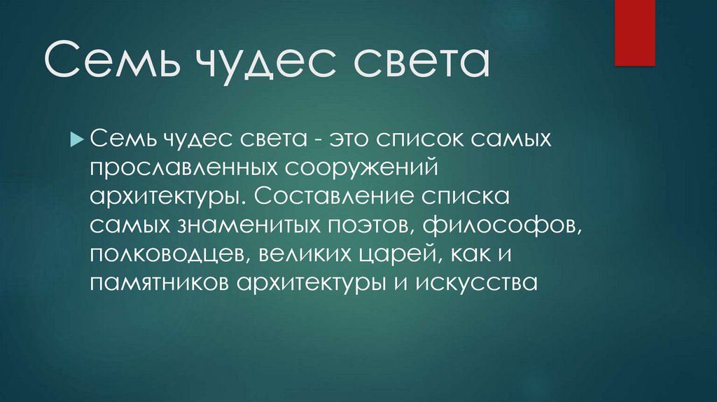 Семь чудес светаПРЕЗЕНТАЦИЯ УЧЕНИКА 8В КЛАССА