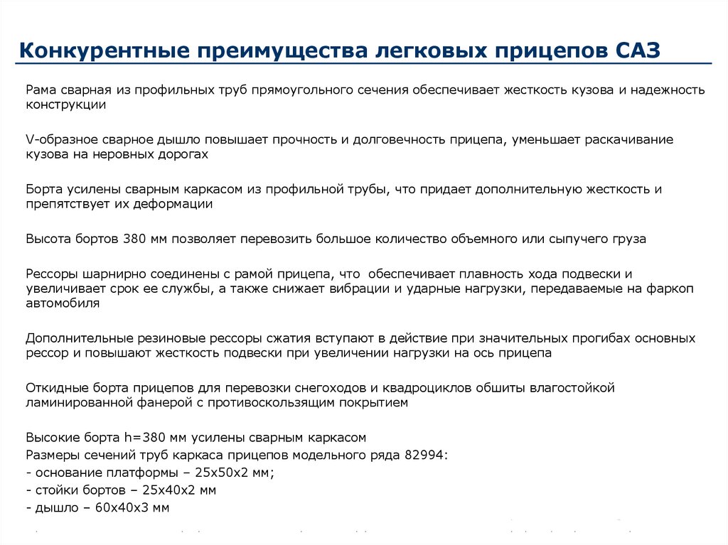 Конкурентные преимущества легковых прицепов САЗВысота бортов 380 мм позволяет перевозить большое