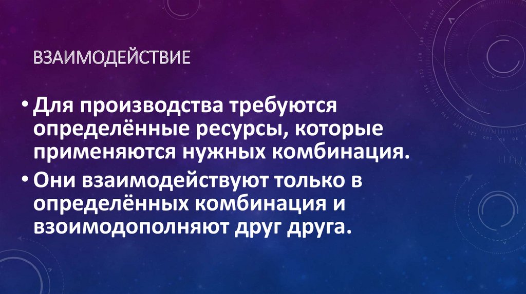 ВЗАИМОДЕЙСТВИЕ• Для производства требуются
