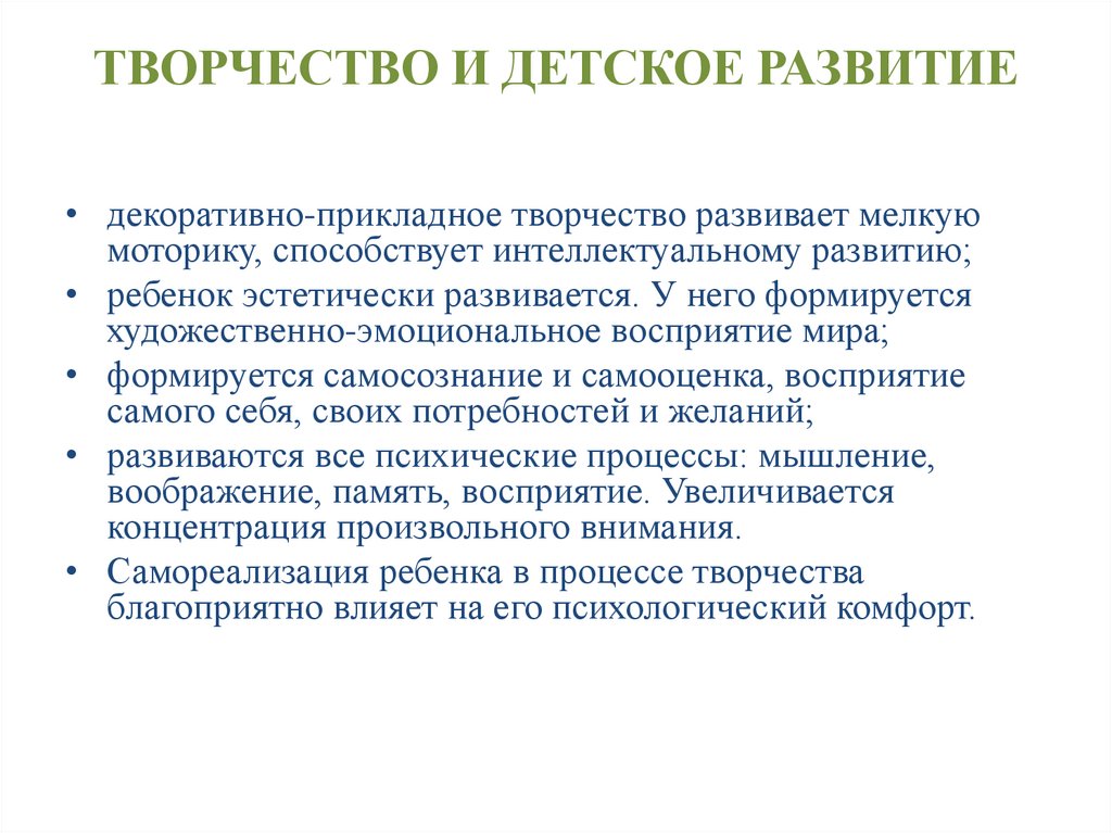 ТВОРЧЕСТВО И ДЕТСКОЕ РАЗВИТИЕ• декоративно-прикладное творчество развивает мелкую