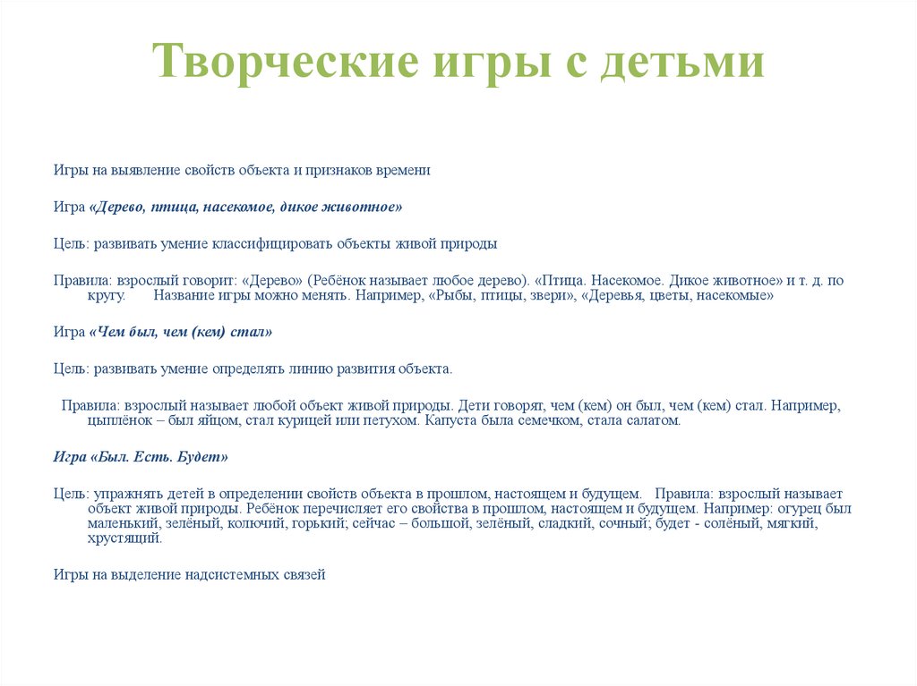 Творческие игры с детьмиИгры на выявление свойств объекта и признаков времени