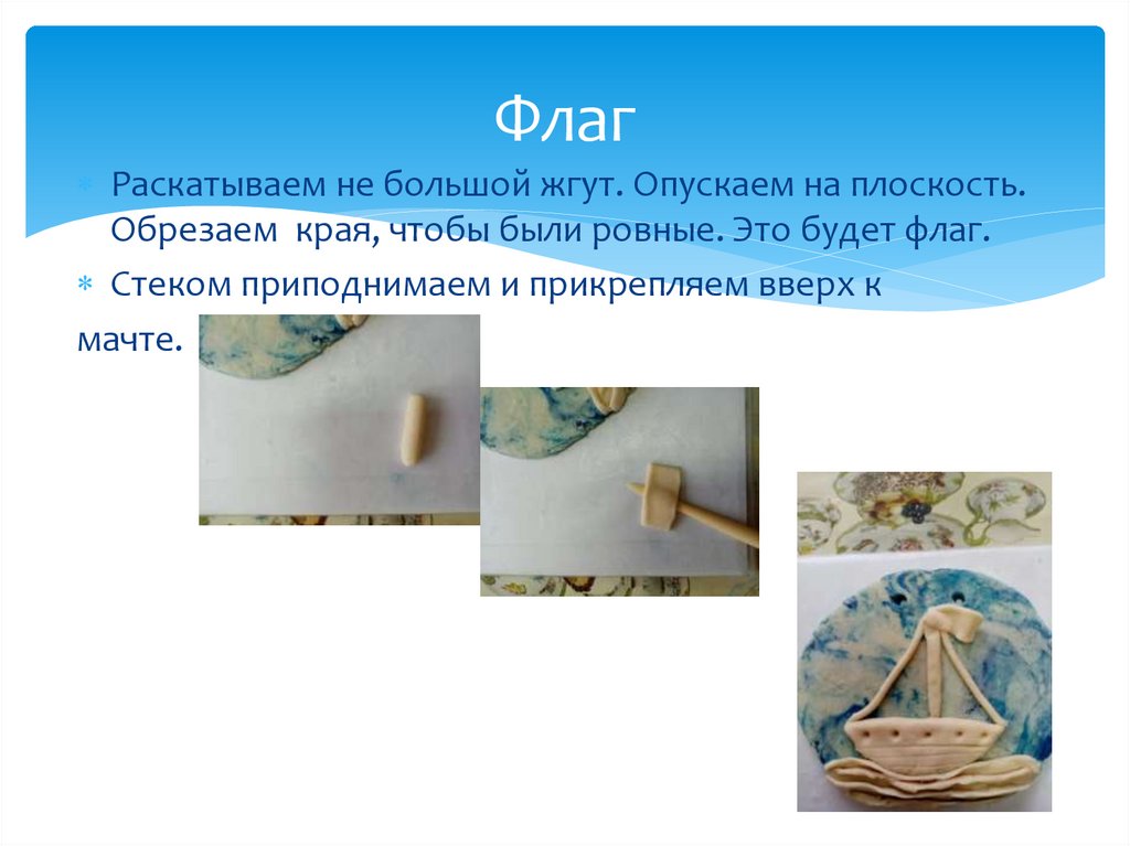 ФлагРаскатываем не большой жгут. Опускаем на плоскость.