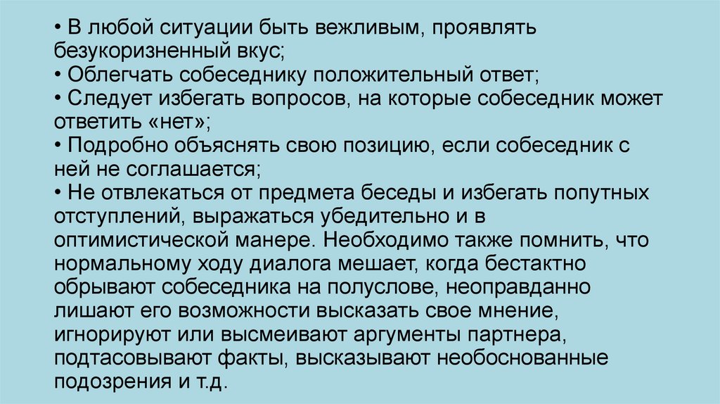 • Подробно объяснять свою позицию, если собеседник с