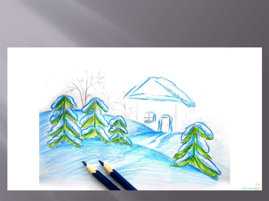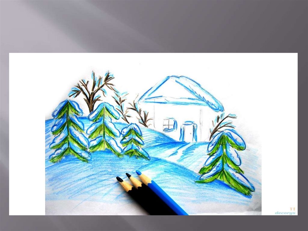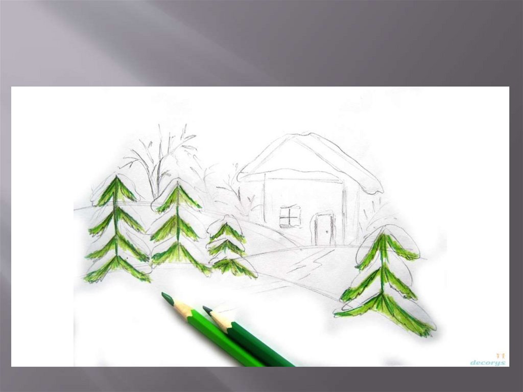 Необходимые материалы:— цветные карандаши зеленых, синих,