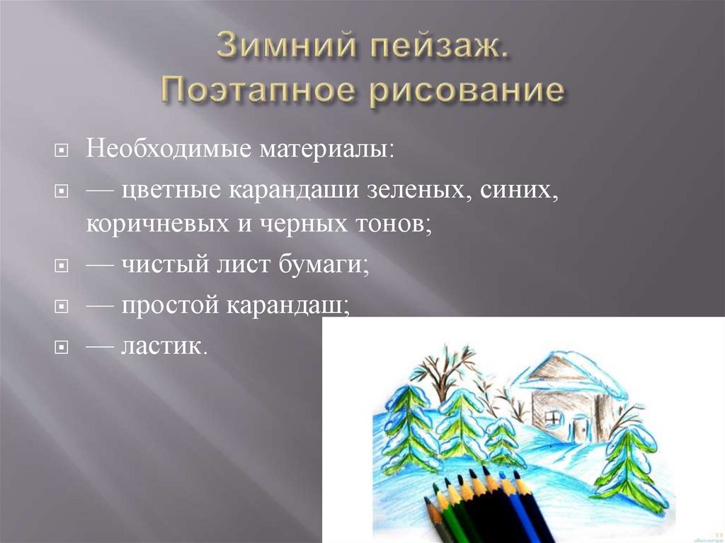 рисунке. Находим цент будущей зимней картины