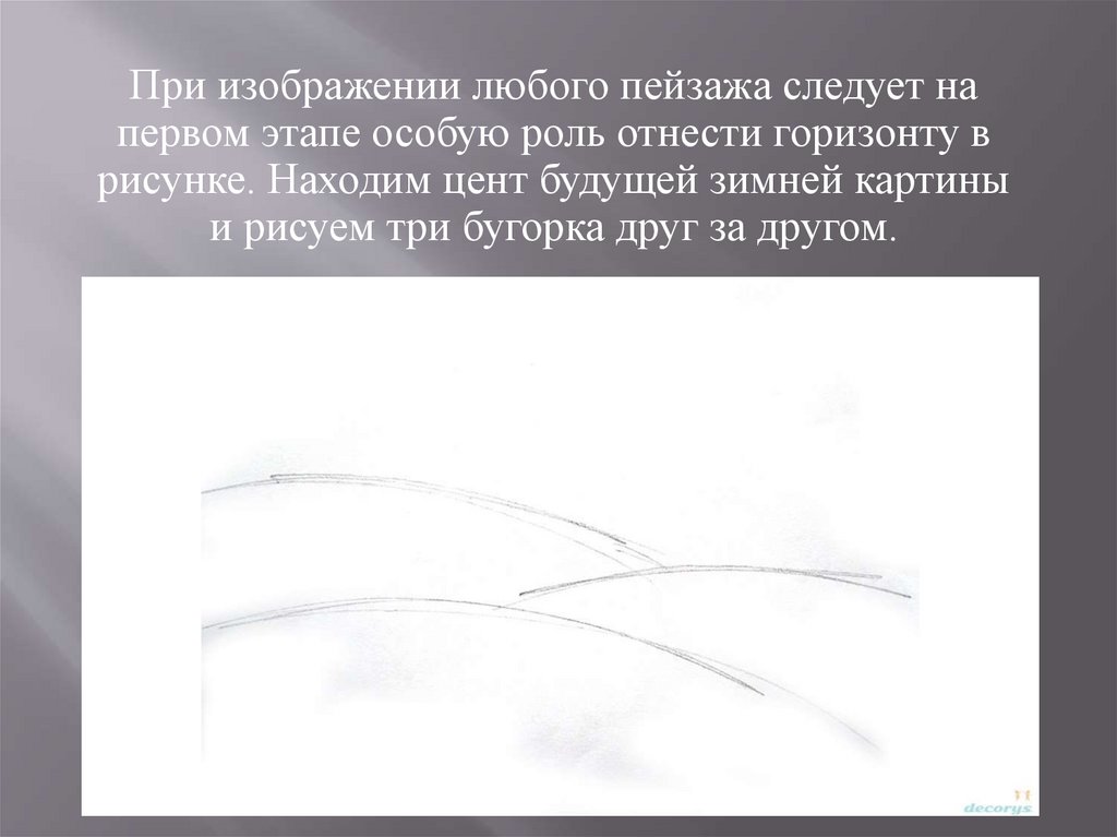 При изображении любого пейзажа следует напервом этапе особую роль отнести горизонту в