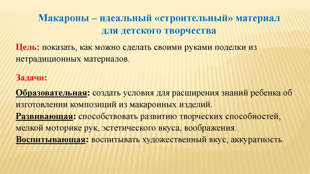Воспитывающая: воспитывать художественный вкус, аккуратность.