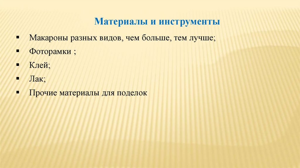 Материалы и инструментыМакароны разных видов, чем больше, тем лучше;