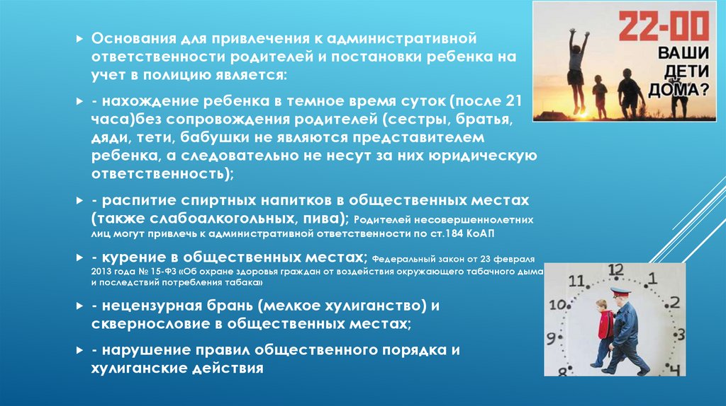 Основания для привлечения к административнойответственности родителей и постановки ребенка на