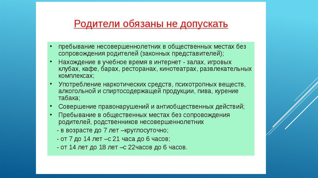(также слабоалкогольных, пива); Родителей несовершеннолетних