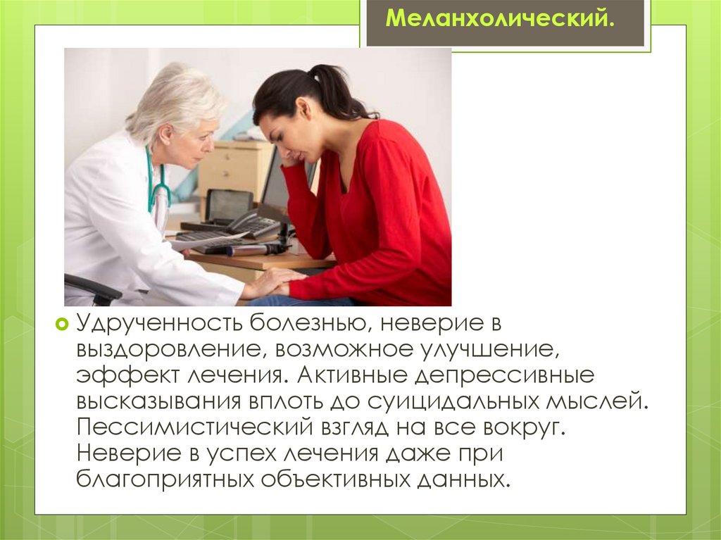 Ипохондрический.Сосредоточение на субъективных болезнях и иных неприятных