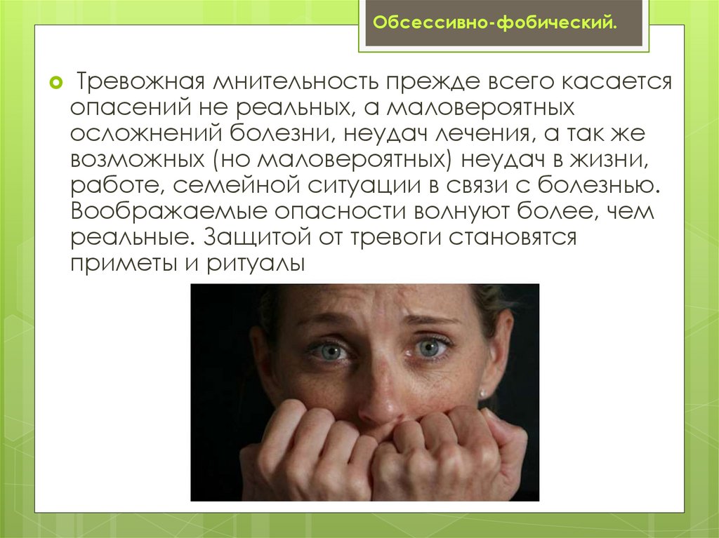 Обсессивно-фобический.Тревожная мнительность прежде всего касается