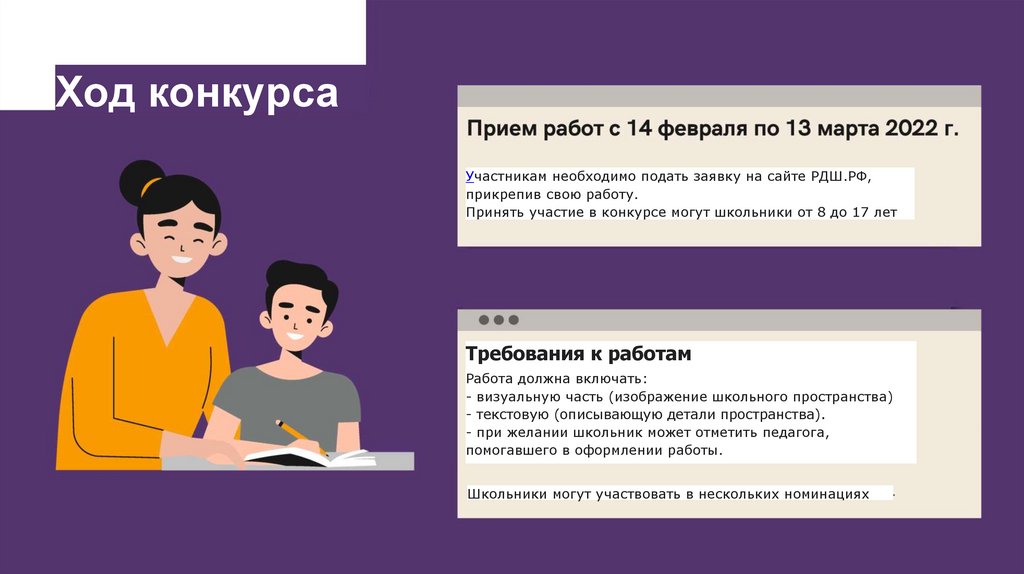 Ход конкурсаУчастникам необходимо подать заявку на сайте РДШ.РФ,