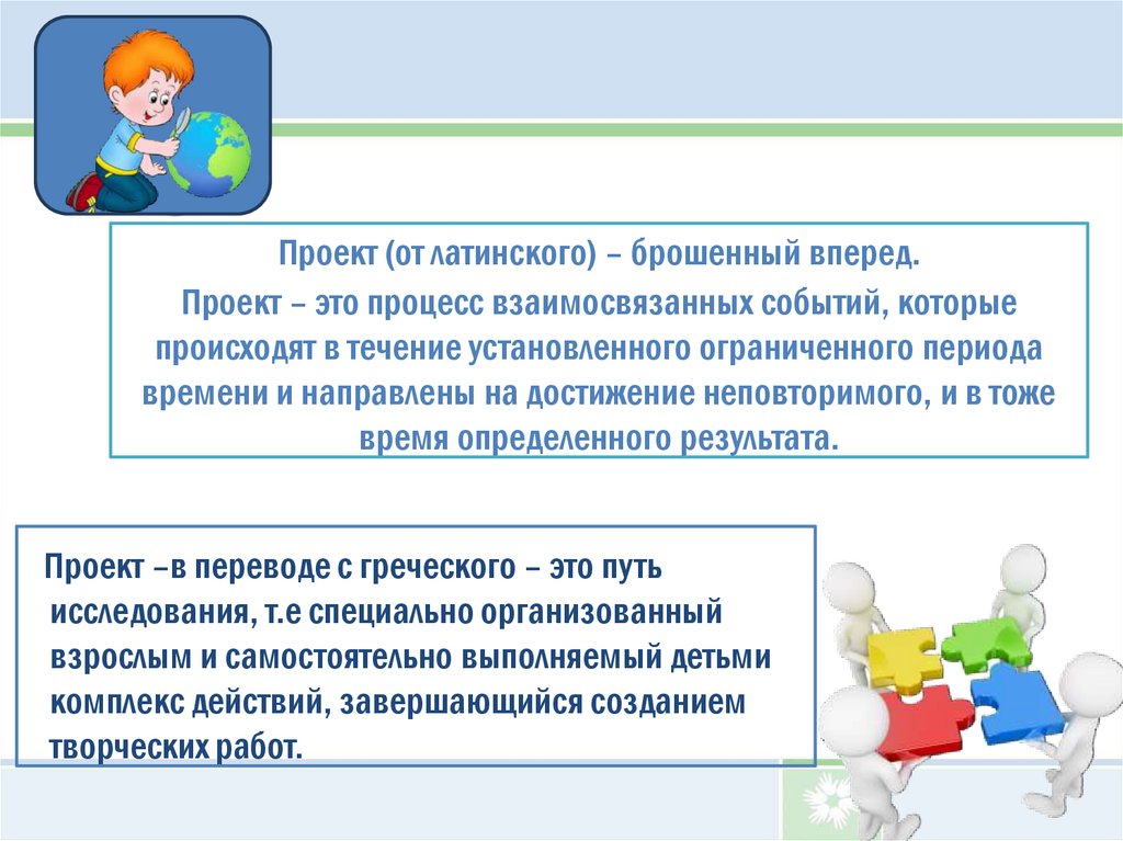 Проект (от латинского) – брошенный вперед.Проект – это процесс взаимосвязанных событий, которые