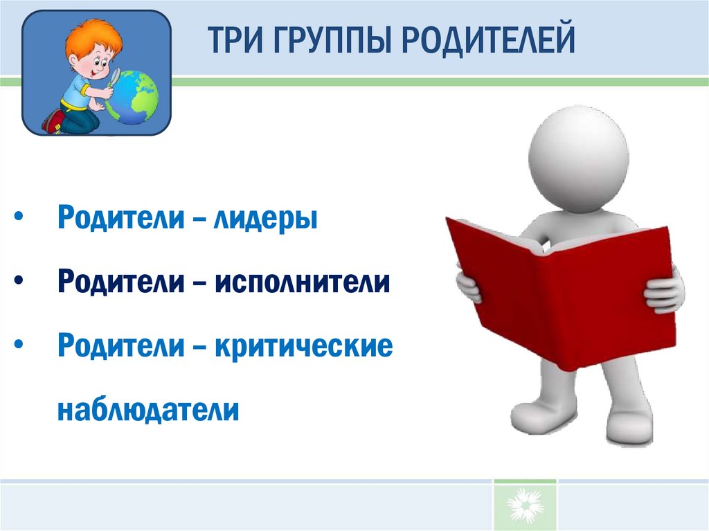 ТРИ ГРУППЫ РОДИТЕЛЕЙ• Родители – лидеры