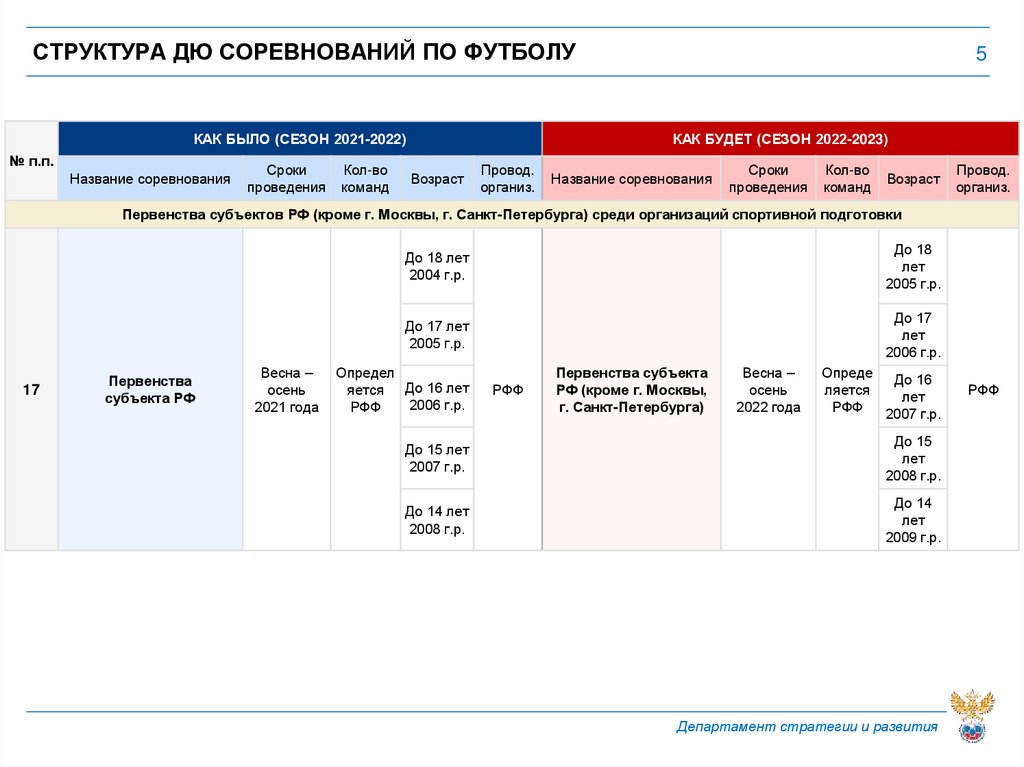 СТРУКТУРА ДЮ СОРЕВНОВАНИЙ ПО ФУТБОЛУКак будет (СЕЗОН 2022-2023)