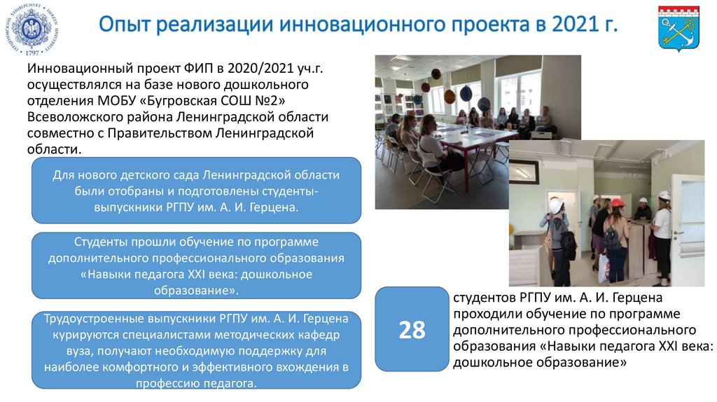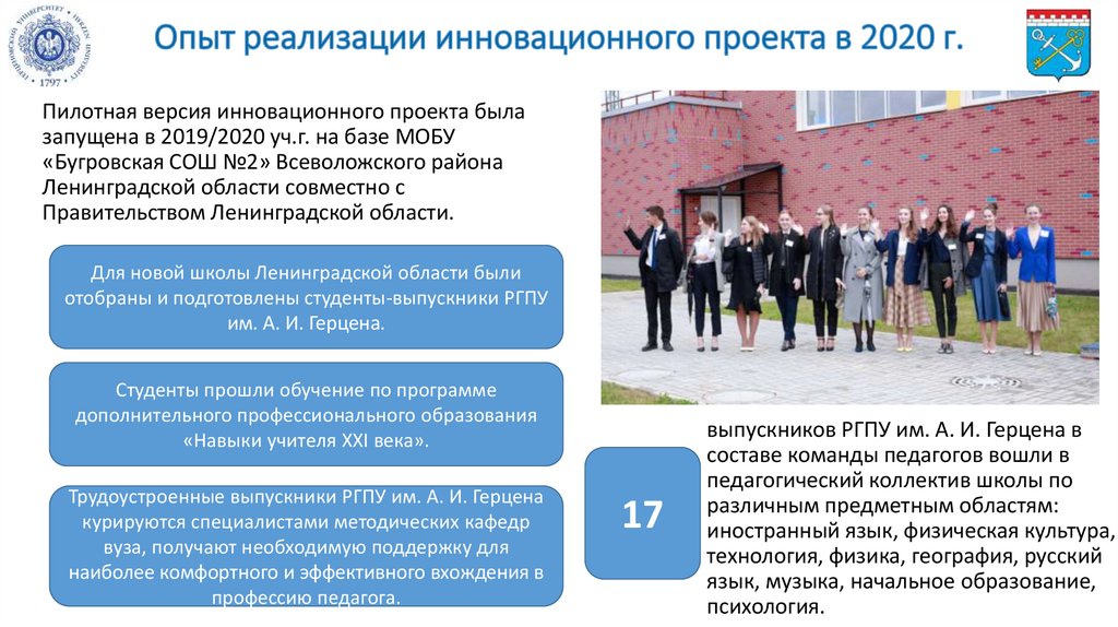 были отобраны и подготовлены студентывыпускники РГПУ им. А. И. Герцена.