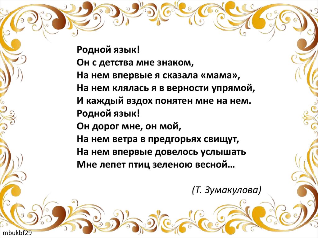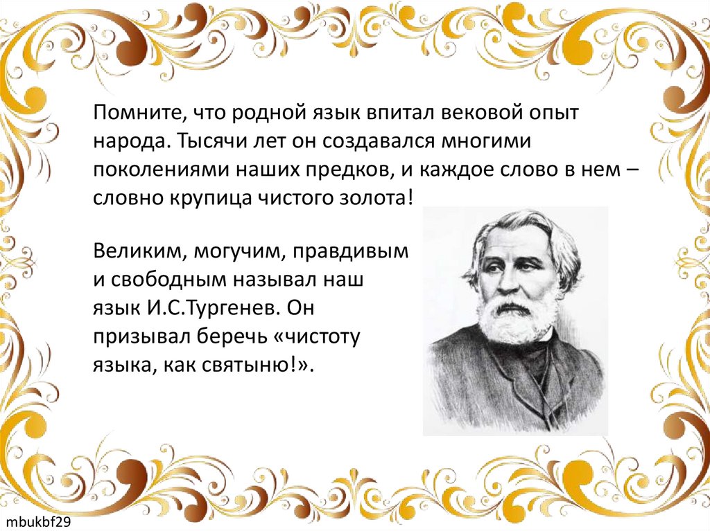 Помните, что родной язык впитал вековой опытнарода. Тысячи лет он создавался многими