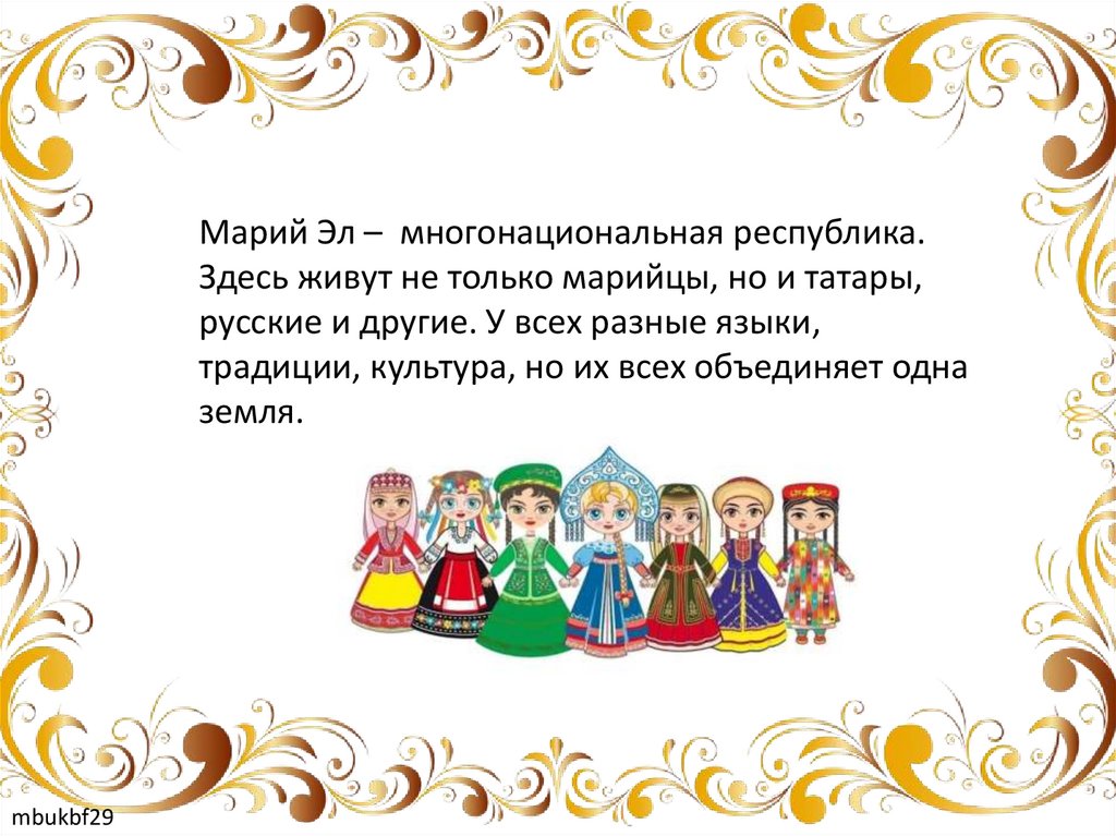Марий Эл – многонациональная республика.Здесь живут не только марийцы, но и татары,