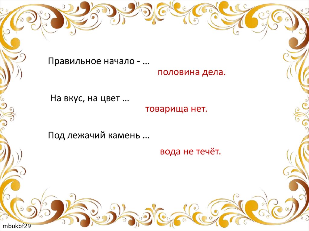 Пословицы, которые надо «составить»:Вся семья вместе …