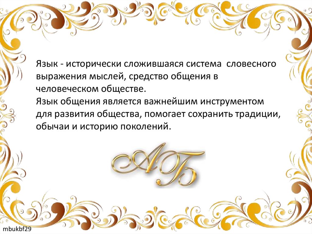 Язык - исторически сложившаяся система словесноговыражения мыслей, средство общения в