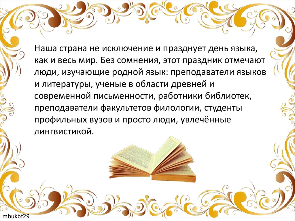 Наша страна не исключение и празднует день языка,как и весь мир. Без сомнения, этот праздник отмечают