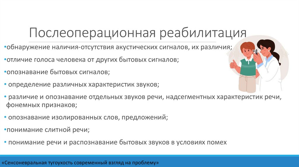Послеоперационная реабилитация•обнаружение наличия-отсутствия акустических сигналов, их различия;