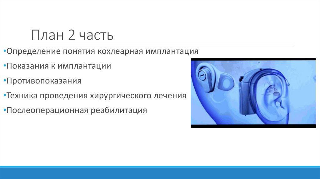 План 2 часть•Определение понятия кохлеарная имплантация
