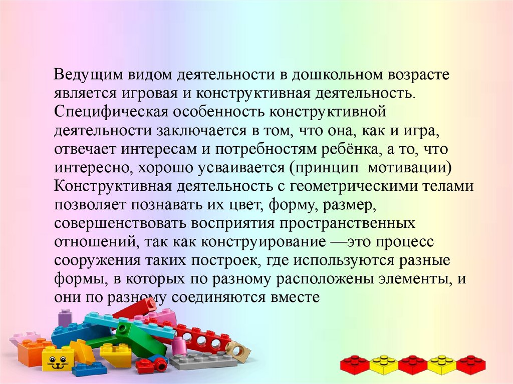 Ведущим видом деятельности в дошкольном возрастеявляется игровая и конструктивная деятельность.