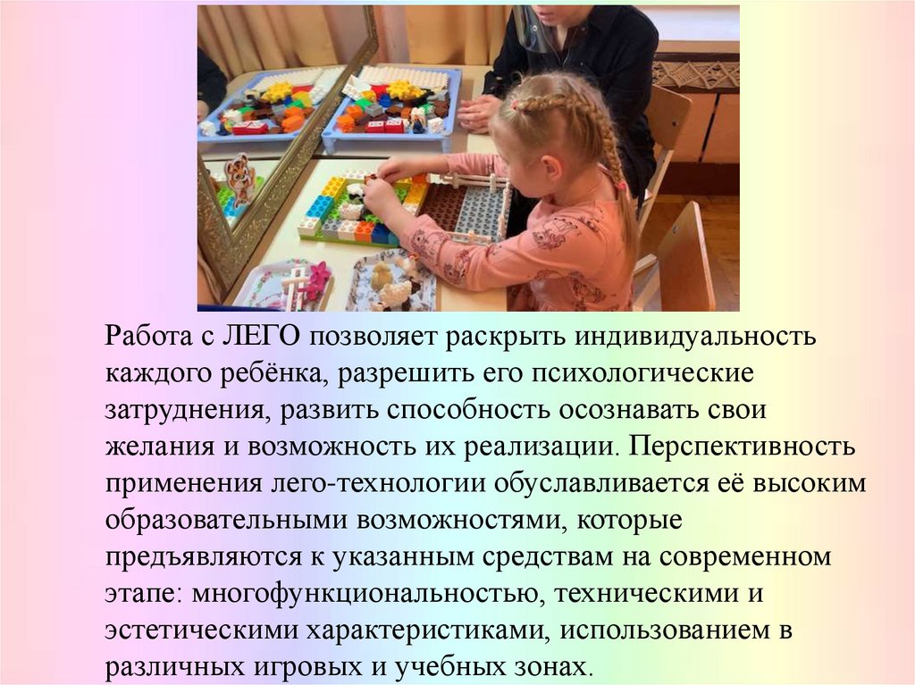 Работа с ЛЕГО позволяет раскрыть индивидуальностькаждого ребёнка, разрешить его психологические