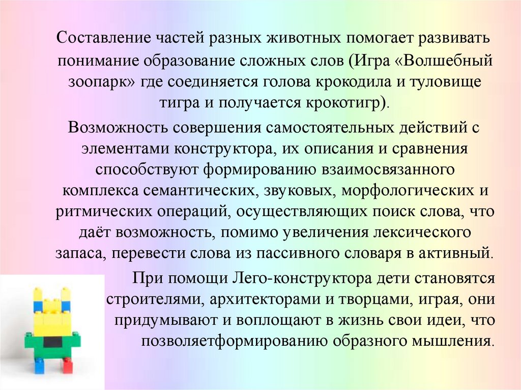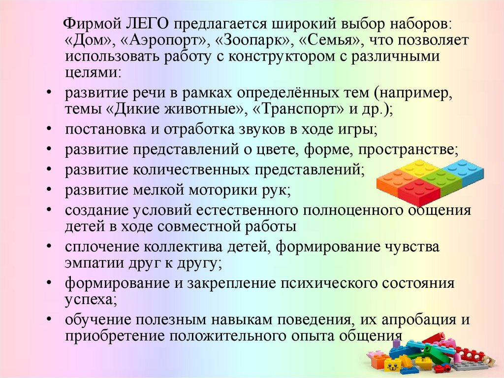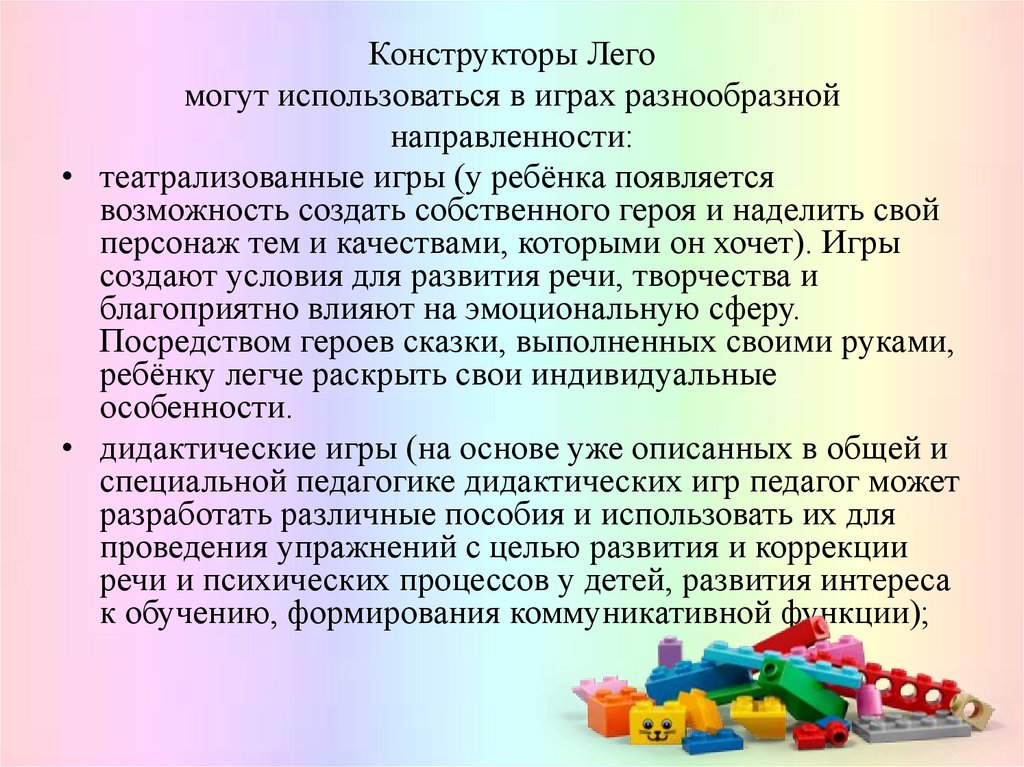 позволяют использовать Лего-конструктор в работе с