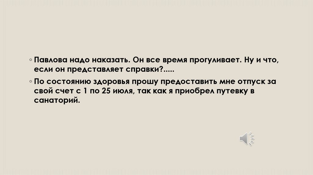 ◦ Павлова надо наказать. Он все время прогуливает. Ну и что,если он представляет справки?.....