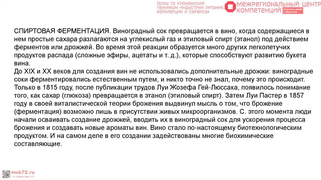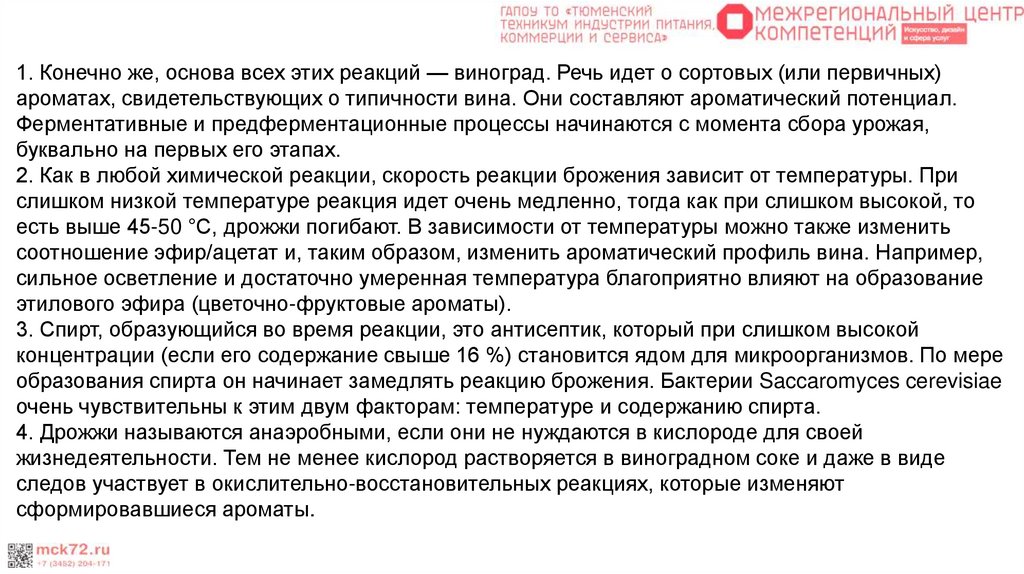 брожения и создавать новые ароматы вин. Вино стало по-настоящему биотехнологическим