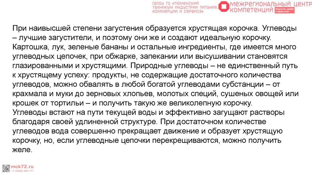 При наивысшей степени загустения образуется хрустящая корочка. Углеводы– лучшие загустители, и поэтому они же и создают идеальную корочку.