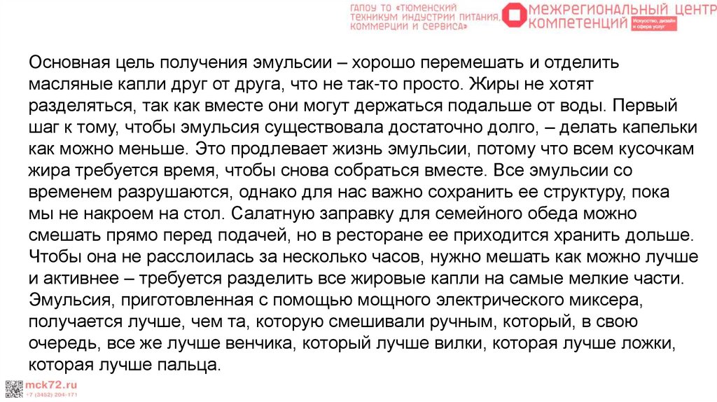 исходное состояние эмульсии. Чтобы получить эмульсию, мы заставляем жиры