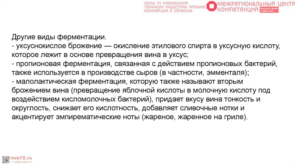 начинаются такие процессы, как вторичное брожение, медленное разложение, окислительновосстановительные реакции. Кислотность, процентное содержание сахара и спирта меняются и