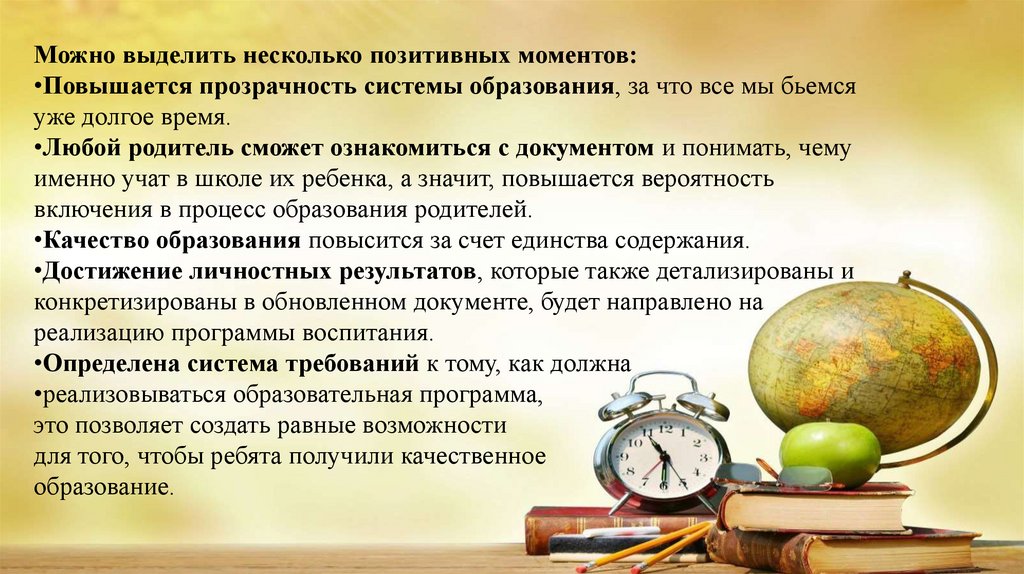 Можно выделить несколько позитивных моментов:•Повышается прозрачность системы образования, за что все мы бьемся