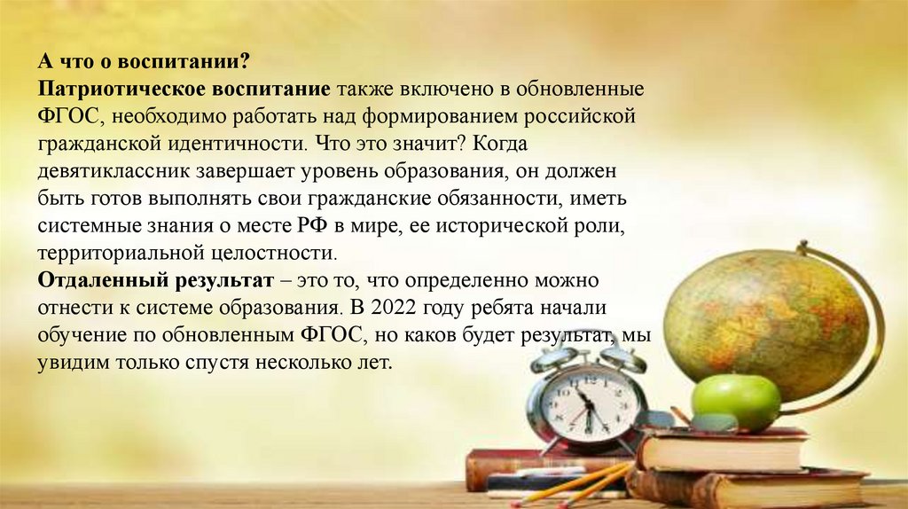 А что о воспитании?Патриотическое воспитание также включено в обновленные