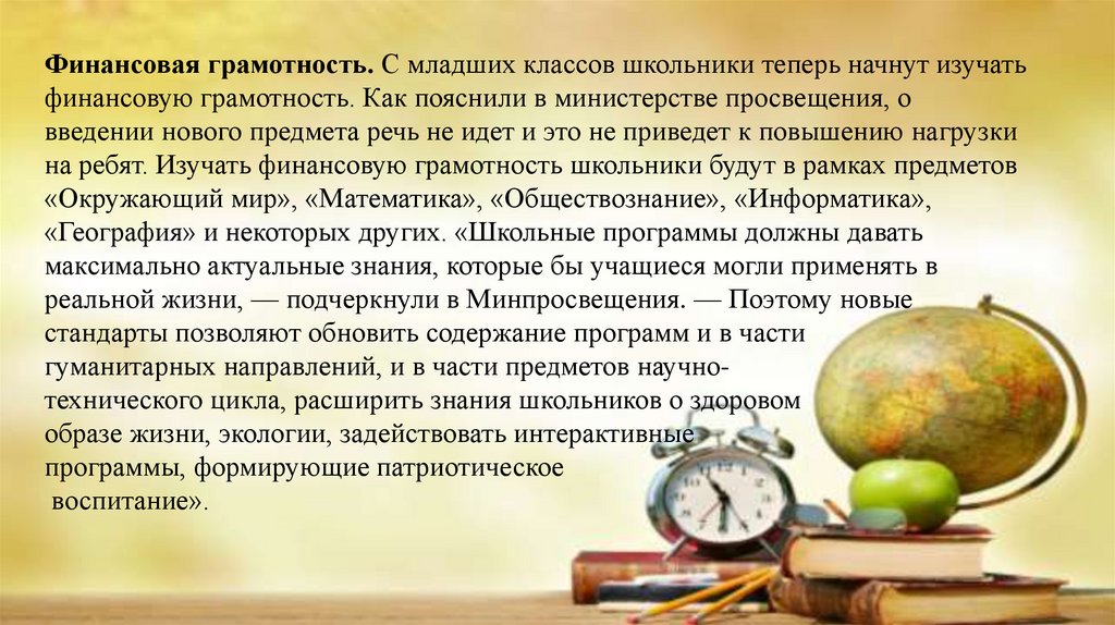 Финансовая грамотность. С младших классов школьники теперь начнут изучатьфинансовую грамотность. Как пояснили в министерстве просвещения, о