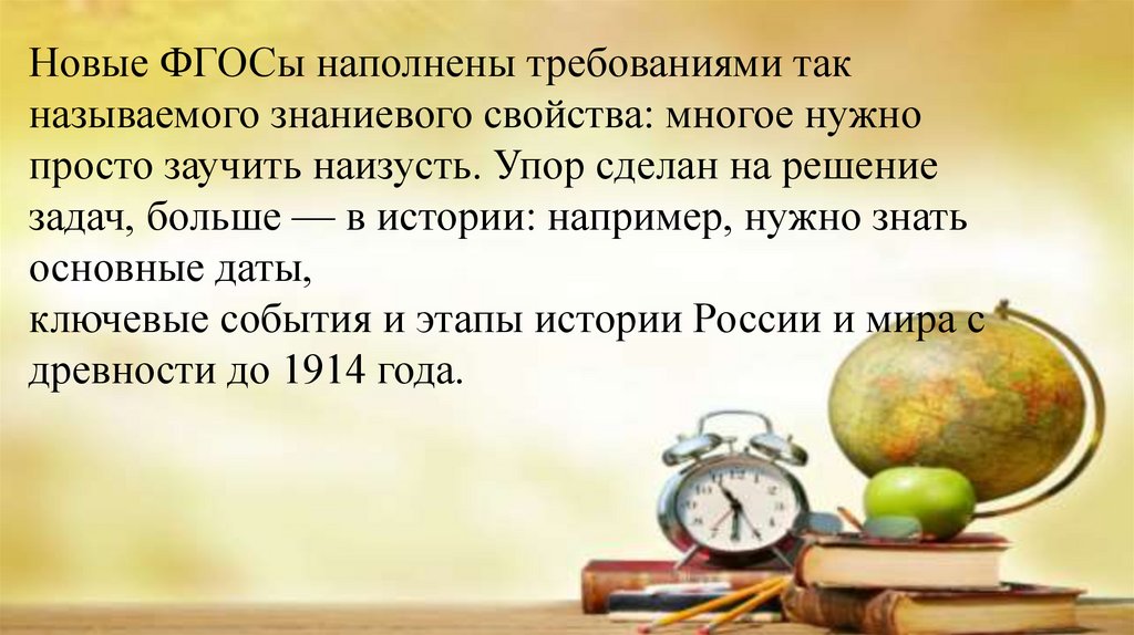 Новые ФГОСы наполнены требованиями такназываемого знаниевого свойства: многое нужно