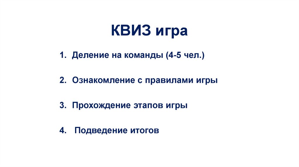 КВИЗ игра1. Деление на команды (4-5 чел.)