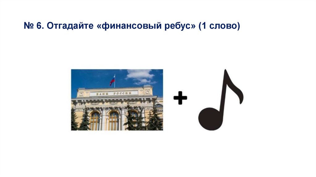 № 1. Отгадайте «финансовый ребус» (1 слово)7.