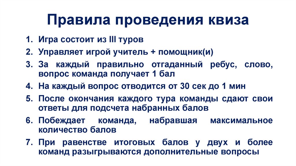Правила проведения квиза1. Игра состоит из III туров