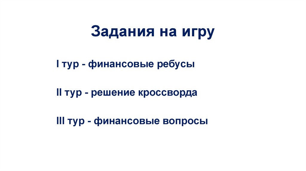 Задания на игруI тур - финансовые ребусы