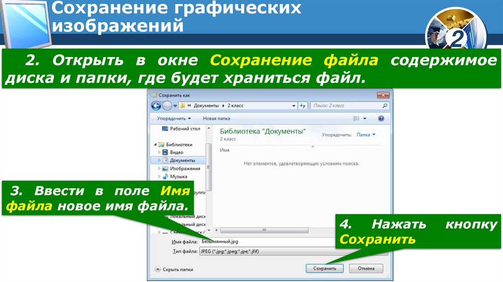 2. Открыть в окне Сохранение файла содержимое
