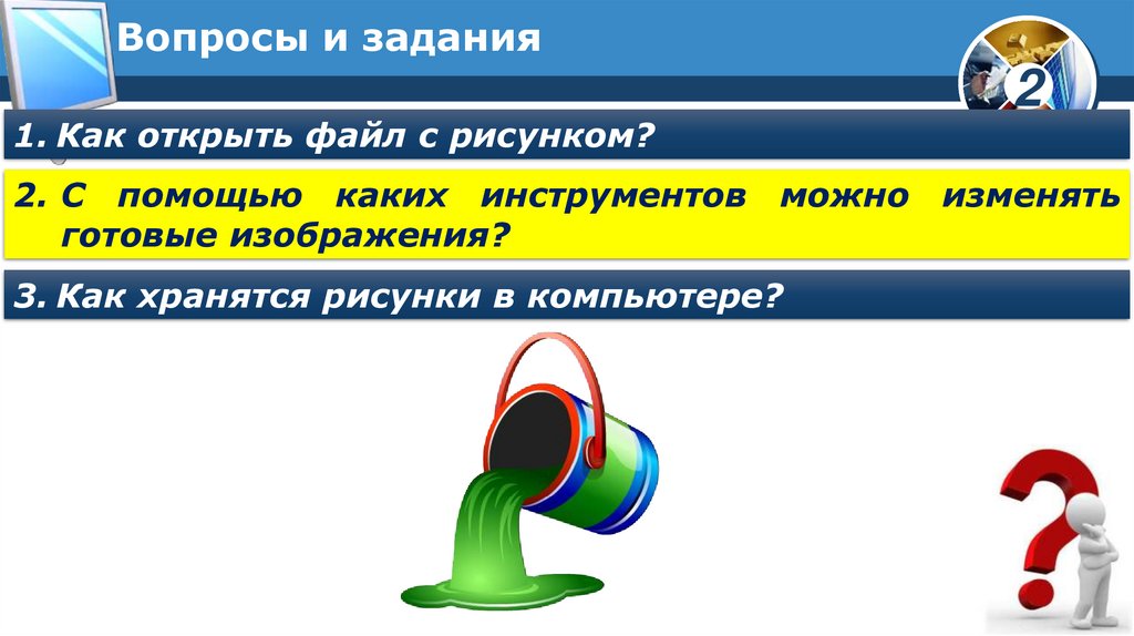 Вопросы и задания1. Как открыть файл с рисунком?